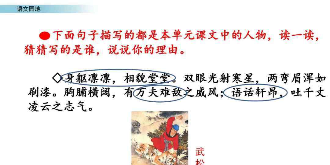 我会说:从“捧着金箍棒”可以看出,这段话描述的是孙武空;从“戴着黑丝绶带围巾,戴着白鹤,飘然而不朽”,可以猜出诸葛亮;从第三段可以看出,它描写了宋武,表现了宋武的英雄精神。