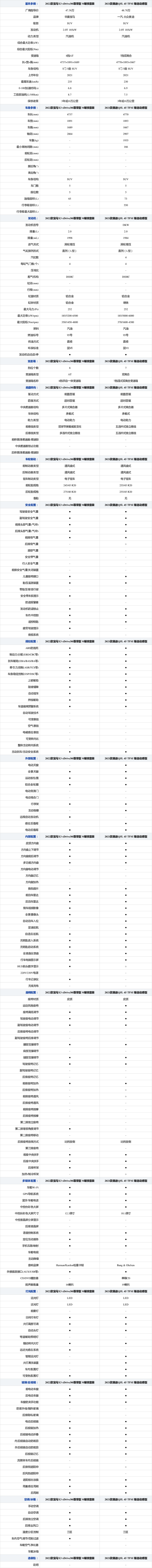 对比车型配置一览