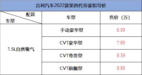 >>2022款 四代帝豪 CVT旗舰型 8.89万(推荐指数:★★★★★)