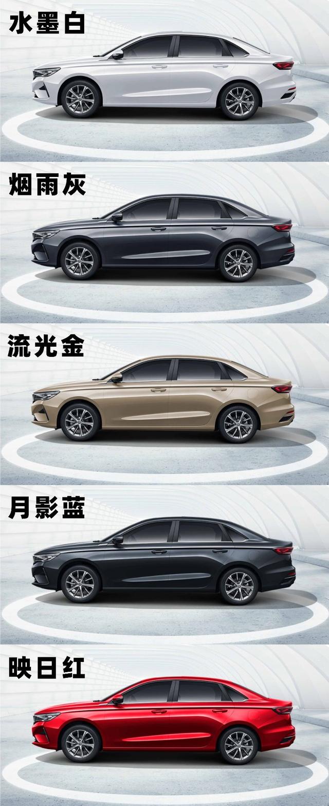 车身配色上四代帝豪共有5种方案可选,分别是水墨白、烟雨灰、流光金、月影蓝,以及映日红。