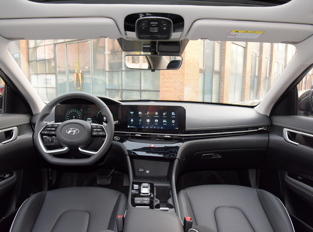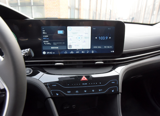 除了提供低成本的出行方式,名图纯电动作为今年上市的新车,自然在智能科技方面更花心思,内饰搭载双12.3英寸连体大屏,四辐式方向盘属于最新的家族式设计,空调控制区域同样采用触控式处理,整个内饰氛围简洁但科技感满满,这在合资B级车当中,都属于拿得出手的内饰档次。