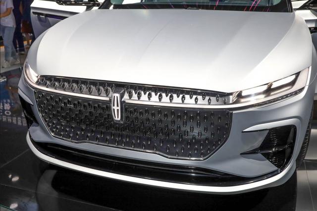 虽然林肯Zephyr Reflection目前还是处于概念状态,但据消息表示该车的外观已经十分接近量产版本了,其采用了林肯家族最新的设计语言,标志的皇冠造型中网内部布满了点阵式的雨滴造型,通过上方一根极具辨识度的LED灯带与两侧大灯组相接,再搭配着两侧“E”字形贯穿式运动套件,给人一种从未来穿越而来的感觉,科幻风很强烈。