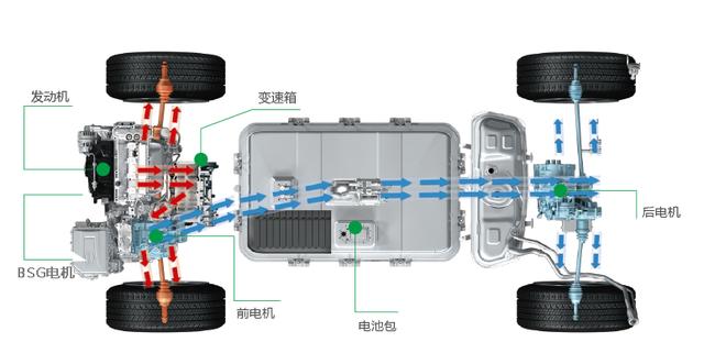 加上后电机则能实现高标准的全时四驱,与其用复杂的分动箱、差速器、限滑差速器实现适时或全时四驱,不如直接增加后电机;因为这些分动结构的目的就是把前发动机的动力引导分配给后轮,加上后置后驱的电机可以实现相同的效果,而且结构更简单、故障率更低,同时能提升性能。