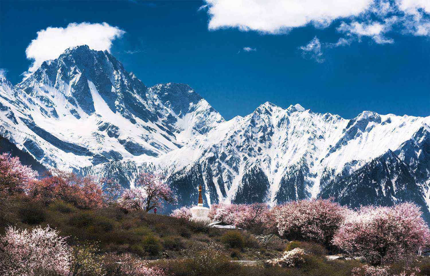 雅鲁藏布大峡谷这里的桃花随高度垂直分布,谷底桃花盛开,而崖顶却是含苞待放。雅鲁藏布江汇聚雪山融水,川流于谷底蜿蜒曲折,时而平静、时而奔腾;江边一株株桃树,将飘零的花瓣撒向江水,让记忆不再回头。