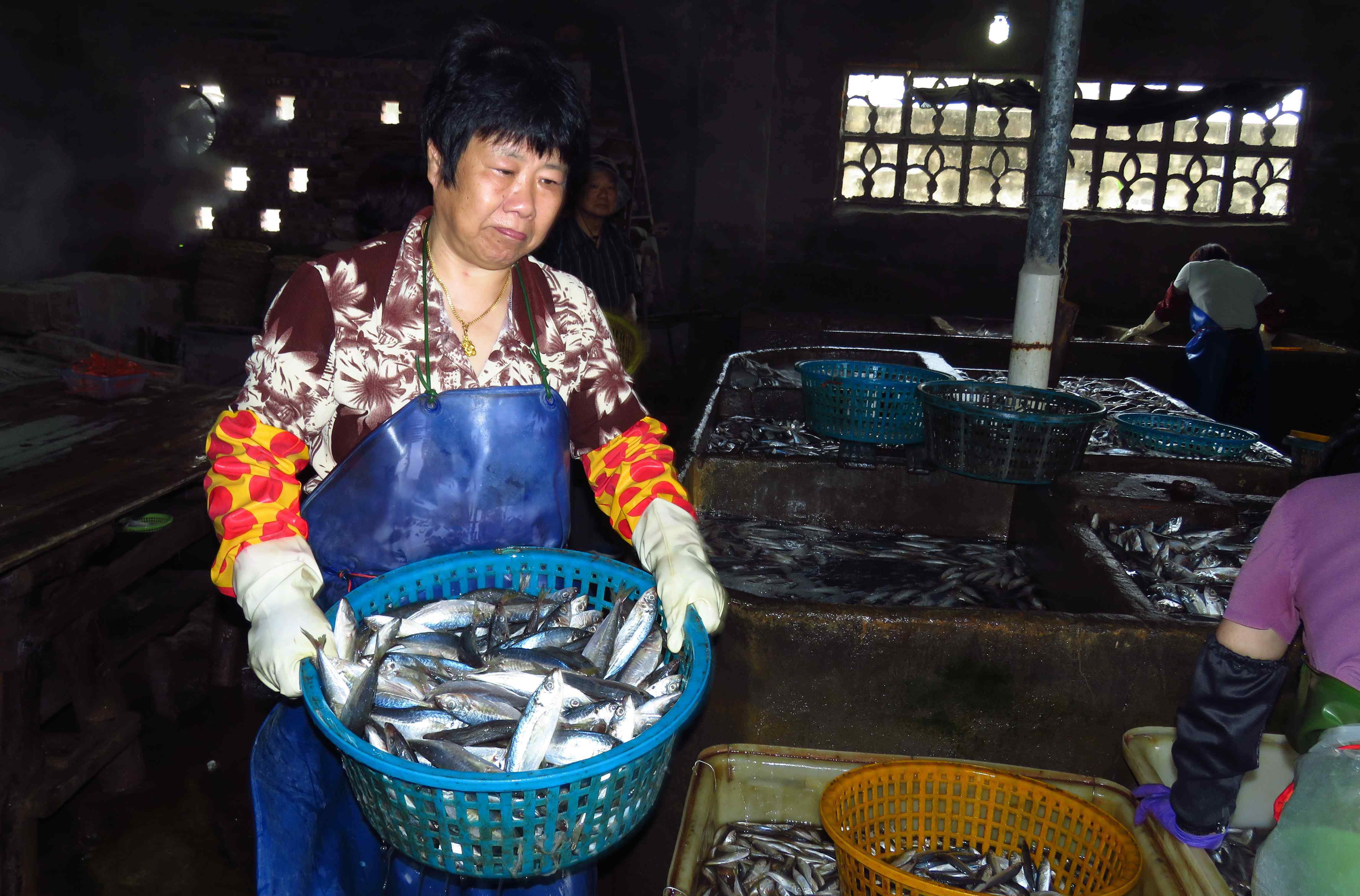 梅花镇是纯渔业镇、也是福建省十强渔业重镇之一,其历史可以追溯到唐、宋、元时改称“芳桂乡新开里”,明为“二十四都梅花城。这是一个水产品加工小作坊、从鱼解冻、浸泡、分栋,清蒸、下午送往马尾水产批发市场,满足市民生活需求。