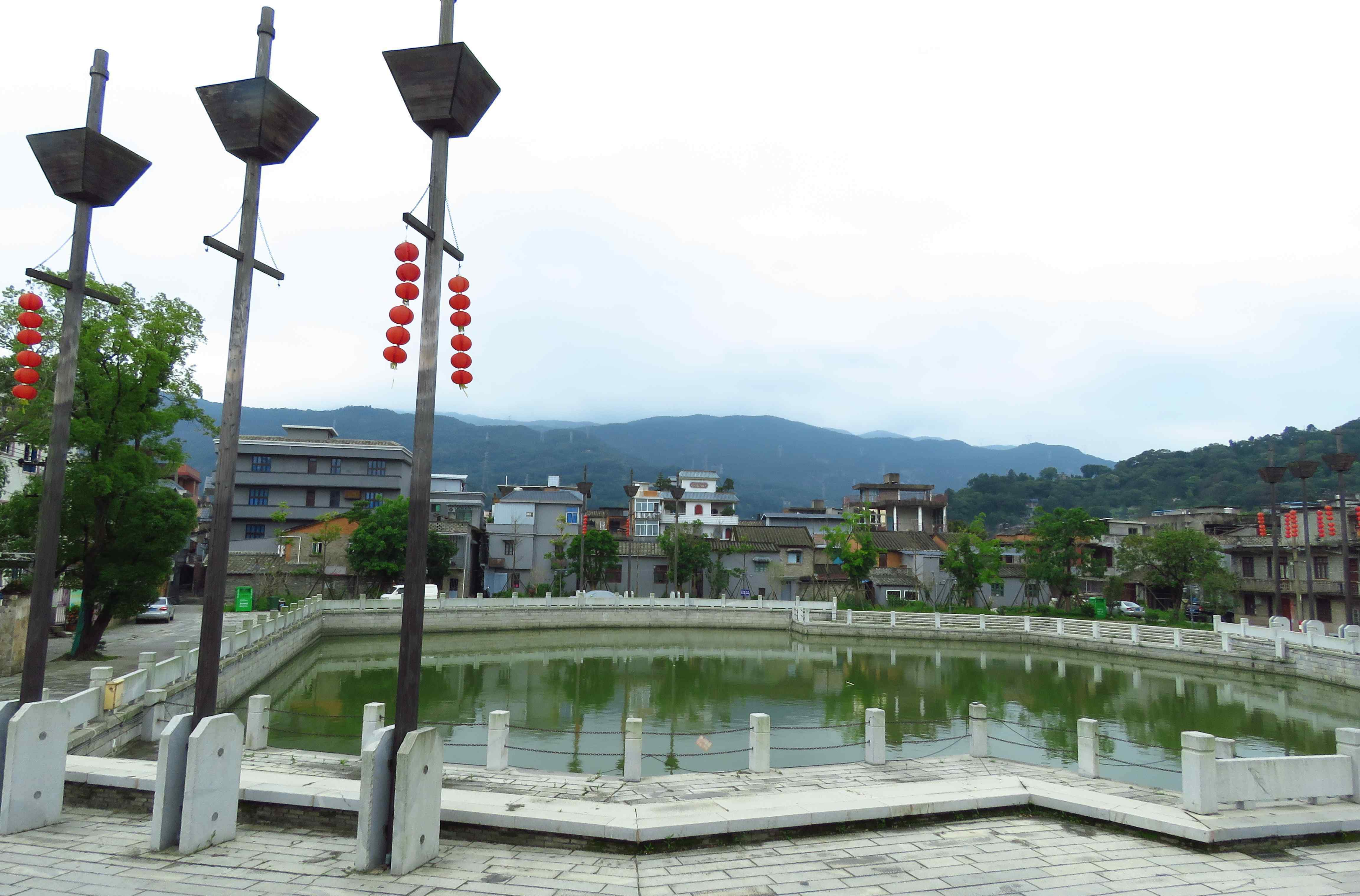 古城东门井:明洪武年间筑,正方形花岗岩石砌。.深三丈余〈约10米〉,原为梅花城内千户所军民生活饮 水之用,至今仍作为附近居民的生活饮用。
