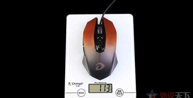 它的尺寸约为130mm×70.5mm×41mm,重量约为113g(官方称109 3 g)。虽然它的外形在数值上比较大,但是因为鼠标前端比较长,比较尖,即使不是中等大小的手型,比如16.5-17.5cm的小尺寸的玩家也适合,但是16cm左右的手型就不适合了。