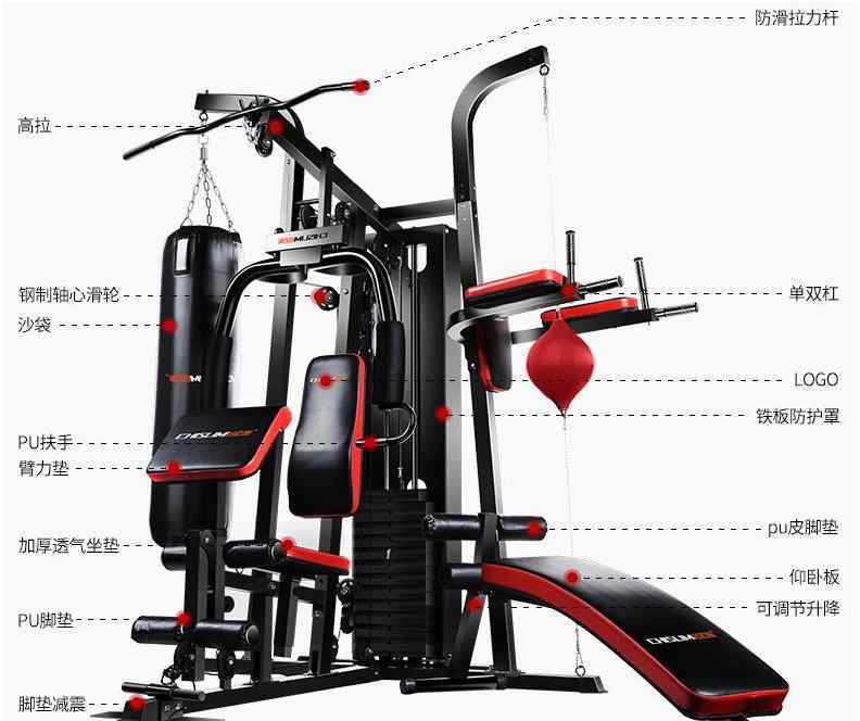 拥有它,拥有自己的私人健身房。背拉杆、沙袋、引体向上等多功能,稳定牢固,承载能力强;表面涂钢琴烤漆,精致大气,防锈防腐。ABS弹性材料制成的防撞球可以有效避免设备各部件之间的直接撞击,从而起到保护设备的作用。高品质透气泡沫材料,防滑吸汗,让您在运动的同时享受舒适。