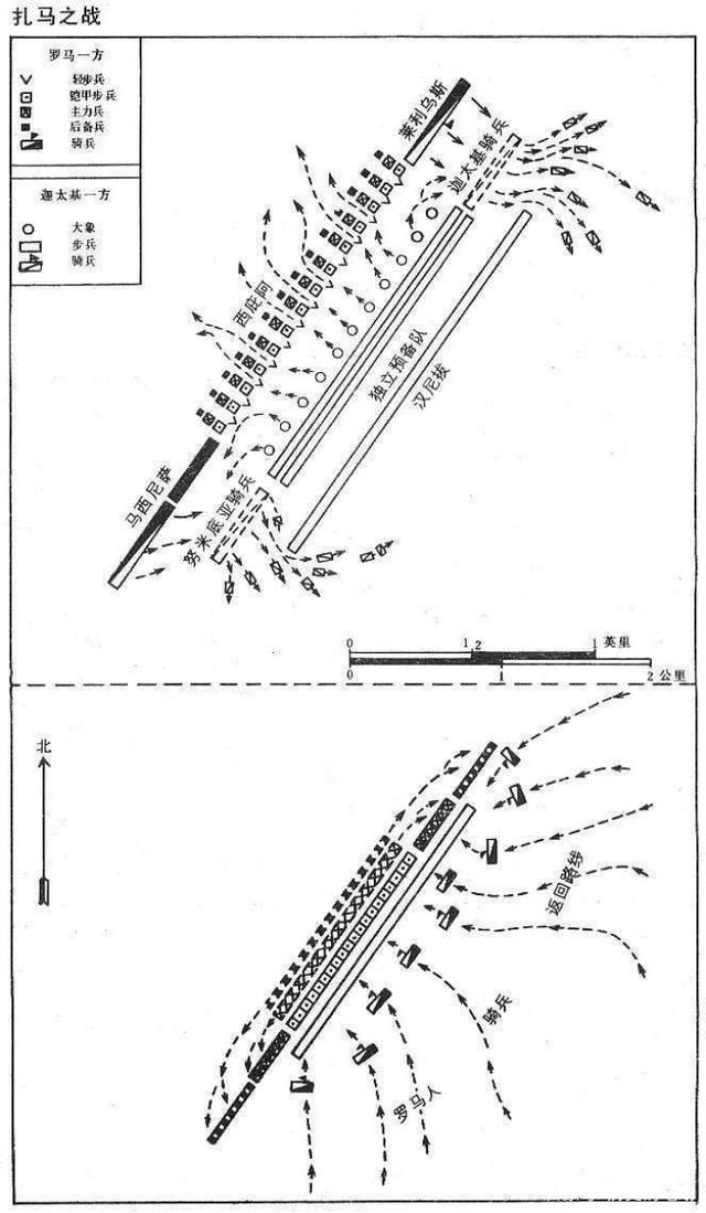 扎马之战:公元前202年,大西庇阿在扎马战役中击败汉尼拔,罗马因此赢得了第二次布匿战争