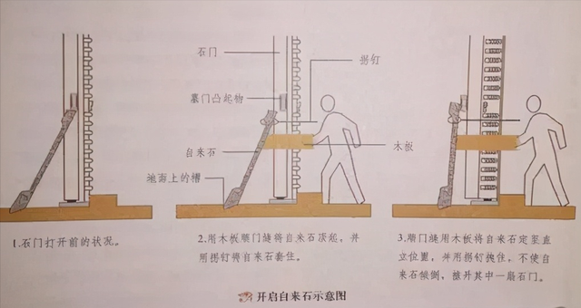 古代工匠们对于地宫大门的封闭,采用了民间的“木栓顶门”的原理,即:用一根长石条,从内部将门给顶住,这样一来,便可以消除从外面靠外力推门进入的可能。