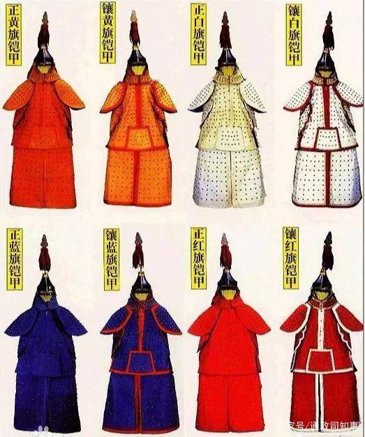 八旗军服以颜色区别,只为大阅礼时穿着,平时并不常用。一开始各旗地位是平等的,直到入关之后,才出现了皇帝自领上三旗的做法。其余的五旗就成为了下五旗。