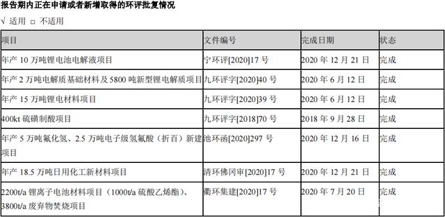 去年,天赐又有6个项目相继完成环评,其中5个都是电解液相关。