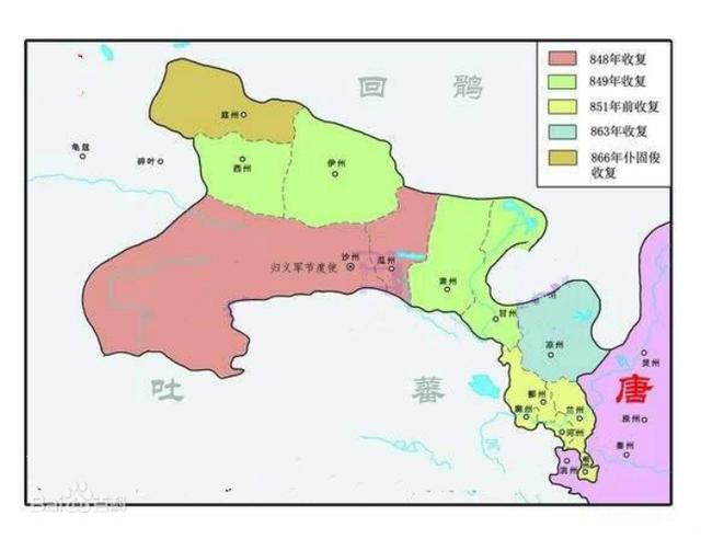 唐朝收复河西:851年,张义潮归唐后,被封为节度使,唐朝重新收复河西地区。