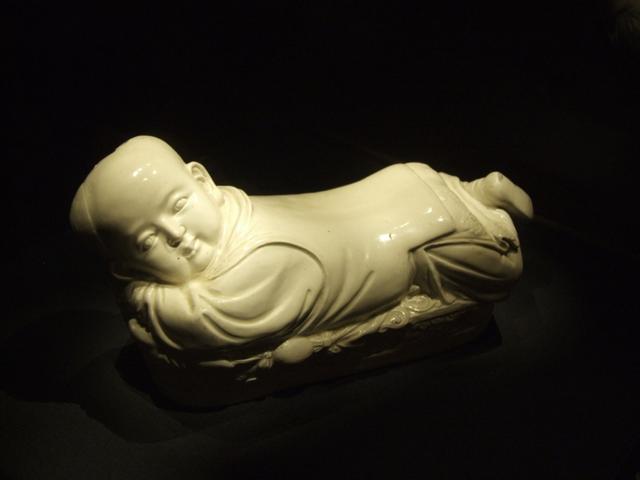 定窑烧制的这些娃娃枕头,不但进入平民百姓家,也打破了戒备森严的紫禁城,进入了皇家的后院。诚然,多子多福不仅是平头小百姓的美好愿望,同样也是历代帝王所追求的。这些帝王们寻求自身的长生不老不可得,转而希望自己的子子孙孙繁荣昌盛、无穷无尽。正是在这种愿望的驱使下,大量的定窑的娃娃枕进入了皇家的生活。