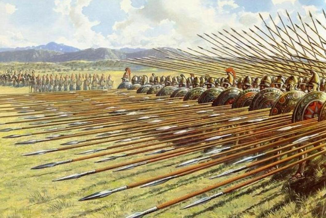 马其顿军队使用的长枪阵又被称为马其顿方阵,在历史上赫赫有名,被西方学者称作是在冷兵器时代里,步兵对抗骑兵的最佳方法。