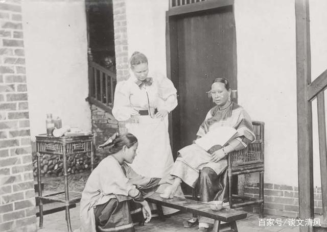 在清朝,女人大多裹足,从很小的时候就饱受缠足的痛苦,是双脚严重变形,不仅如此还忍受着精神上的痛苦。这张照片是一名中年女性在向外国人展示他的小脚,不得不说,女性缠足不仅是对女性的歧视,更是那个年代腐朽落后思想的见证。