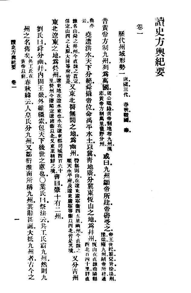 《读史方舆纪要》原名《二十一史方舆纪要》。是中国清初历史地理、军事地理名著。全书共130卷,其中包含舆地要览图36幅,沿革表35份,共280多万字。现有嘉庆十七年(1812)龙氏刻本、中华书局重印商务《万有文库》本等版本行世。