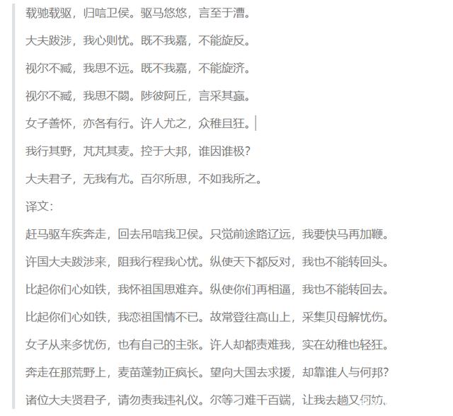 小女子本姓姬,母亲是当时齐国第一大美女宣姜,我也优良的遗传了母亲的基因。我母亲历经沧桑,是位很有故事的女人,用现在的话讲是趟过男人河的女人。不过她心底的疼,我是理解的,因为我也很有故事。大家简单的叫我姬姑娘好了。请别称呼我什么许穆夫人,虽然我真的是许穆公这老儿的妻子,其实我真实是不想嫁他的。无奈生于帝王家,我的婚姻只能由人摆布。这也就算了,最不能容忍的是,在我家乡(卫国)遭受戎狄践踏蹂躏之时(堪称春秋版”南京大屠杀“),他不但袖手旁观,作畏首畏尾的缩头乌龟,还阻止我去救我的家乡,生怕惹恼了蛮横的戎狄人,一点也没有男人样。假如我被戎狄夺取,估计他也连个屁都不敢放。当年为了娶我,给我家人送了那么多彩礼,家人见钱眼开,也不顾我的感受,就把我嫁了。嫁个有钱人,真的就幸福吗?现实证明,不过是个幸运的暴发户而已,事到临头才知道是个窝囊废。也请别称呼我什么卫懿公的妹妹或者卫懿公的姑姑(有点乱,唉!我家真的有点儿理还乱的问题),打心眼里我也不想承认这位哥哥(或侄子),因为他不喜欢人,只喜欢禽兽,最爱的就是仙鹤,给鹤加官进爵,有鹤将军,鹤大夫,鹤夫人,并且这些官爵都是有俸禄的。鹤官员们出门,都要享受相应级别的待遇,譬如公车、譬如保卫等级,譬如交通管制等等。鹤夫人有自己的宫室,卫懿公还会临幸它们,做出些禽兽不如的事情来。玩物丧志说得就是他。虽然他被戎狄人碎尸了,也是他自找的,没人同情他。照比他带来的灾难而言,他一人死不足惜。我远嫁他乡,当大风从我发间掠过的时候,有谁体会过我心底那浓浓的乡愁?我曾经美丽的家乡,我曾经眷恋的地方,沦落戎狄之手,有谁知道我的痛?如今我为复国积极奔走,也是仅仅是故乡的原风景在心底的呼唤。那山,那水,那人,承载着我曾经的点点滴滴,曾经的梦,我不允许别人毁坏他。即便毁坏,我也要重建他,不为别人,就是为了我自己心中的那个曾经……曾经我嬉钓于淇水之旁,百泉之畔,“巧笑之瑳,佩玉之傩”,在那里我与小白邂逅,在那里我们欢笑,我们嬉闹,我们心许对方。我发誓要嫁给他,那里是见证我们爱的地方,是我梦开始的地方。岂能任人践踏?如今他已是齐桓公了,我要写信与他,告诉他我的处境,也许他能来帮我,即便不为我,也为我们的曾经,曾经淇水之畔的风景和那里的父老。