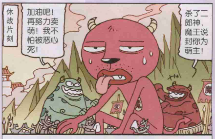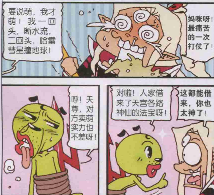 两大萌主始终分不出高下,好在笑天还带来了天宫各路神仙的法宝兵器。所以二郎神便把一切组合在了一起,创造出了传说中的大杀器。终于笑天的一句话,让魔军的萌主忍无可忍,一口老血吐出,这场卖萌终于以笑天的取胜而完结。