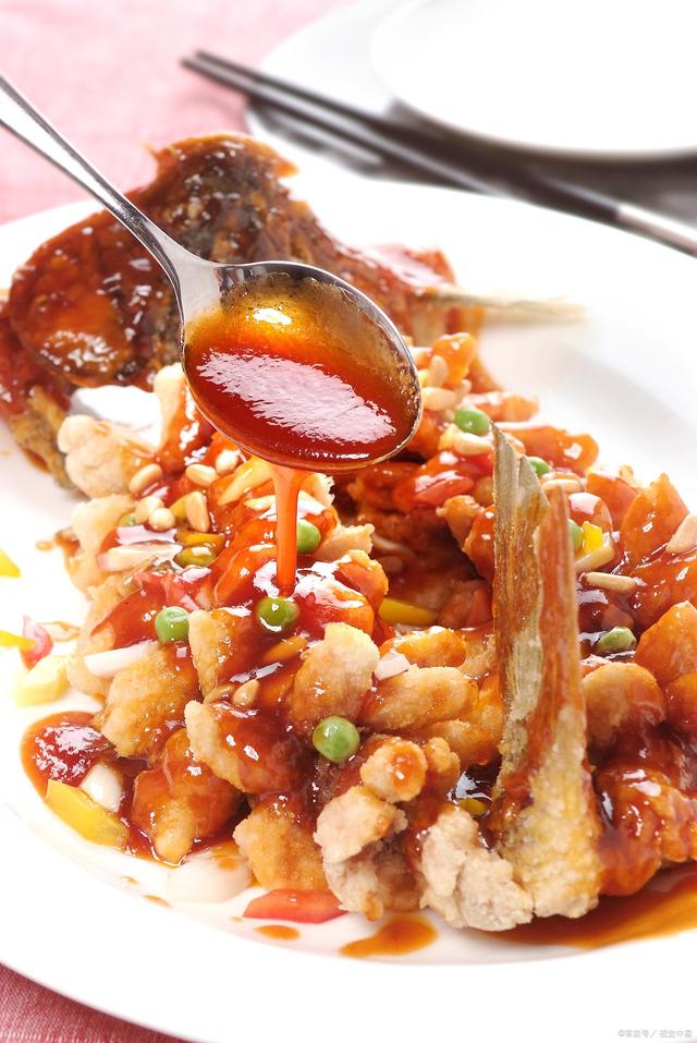 3.白糖、香醋、味精、湿淀粉、精盐15克、番茄酱、肉汤200毫升混合在锅里熬制成卤汁;