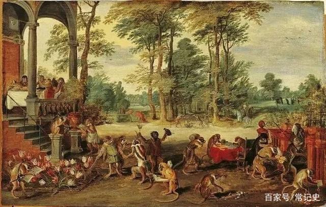▲讽刺人们像猴子一样无脑追捧郁金香的画作