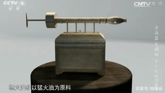 在设备上宋朝也进行了创新,即猛火油柜:“猛火油,以熟铜为柜,下施四足,上列四卷筒,卷筒上横施一巨筒,皆与柜中相通。横筒首尾大,细尾开小窍,大如黍粒,首为圆口,径寸半。柜傍开一窍,卷筒为口,口有盖,为注油处。”士兵从后用力抽送,柜中的油料就会变成烈焰喷射出去,在守城与水战上均是大杀器。