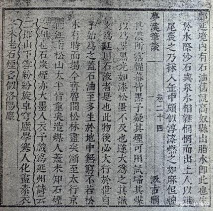 到了宋朝,沈括在《梦溪笔谈》中首次提出了“石油”的概念:“鄜、延境内有石油,旧说‘高奴县出脂水’,即此也。”他发现当地石油产于水边,与砂石泉水混杂,缓缓流出,人们则用野鸡尾将油蘸取,采集到瓦罐中。面对眼前近乎无穷的石油,再对比森林资源的萎缩,沈括预言“此物后必大行于世”,能够取代木炭成为新的能源。不只是高奴,《水经注》提到在酒泉延寿县的南山也坐落着一处特别的“泉水”,其水肥如肉汁,其色先黄后黑,形如凝膏,点燃后极为明亮,但不可饮用,当地人称之为“石漆”。