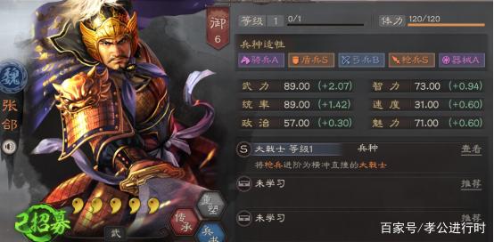 若是张郃统领时,第二段的概率从35%上升到40%,效果略有提升,影响不是很大,至少达不到值得玩家使用张郃这个武将的程度。张郃这个武将并不差,本身属性在这些兵种武将同类里也是数一数二,但改变不了他“无用低能”的标签。
