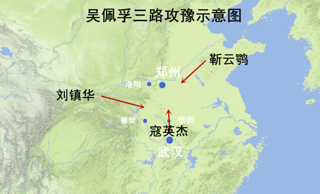 吴佩孚制定了三路进攻河南的计划:靳云鹗率军从鲁西进攻豫东,寇英杰率军从鄂北进攻豫南,刘镇华从陕东进攻豫西。