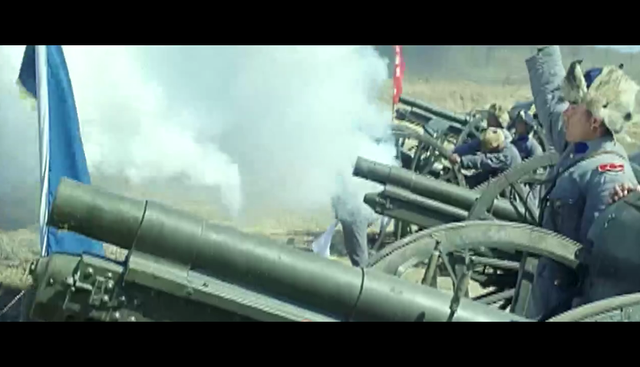 信阳城外大炮声震如雷,蒋世杰横躺在烟榻上,一边淡定地吞云吐雾,一边指挥作战。