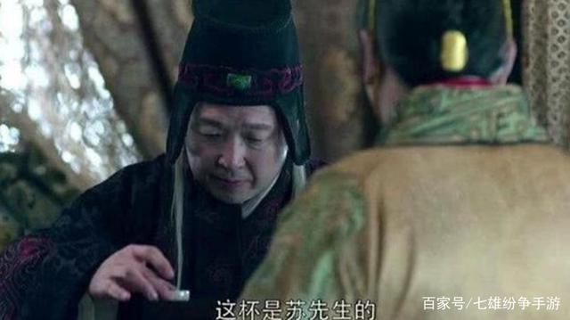 梅长苏还是进宫了,此时梁王已经起了疑心,本着宁可错杀也不可漏掉的原则,让高公公将毒酒赐给梅长苏。此时高公公下了一招险棋:他拿着毒酒像是请示梁王一般说“这杯是苏先生的”,此话一处,明白人自然知道这酒有问题,梁王也是傻了眼,但奈何高公公这糊涂装得好啊,人也以为是提醒你梁王千万别把毒酒搞混了。