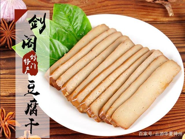 相传从三国蜀汉以来,就已经有剑门豆腐的制作了。刘备曾封之为“皇豆腐”。剑门山区还有姜维守剑阁时就地取材磨制豆腐犒赏官兵的传说。其中以志公寺豆腐干最为出名,相传是由梁武皇帝和得道高僧志公长老发明制作。剑门关豆腐干是用剑门豆腐为原料,经过压榨,卤制而成的口感好,营养价值高,采用真空包装的绿色休闲食品,有多种风味。其形状四方,皮表金黄,洁白细嫩,醇香可口。