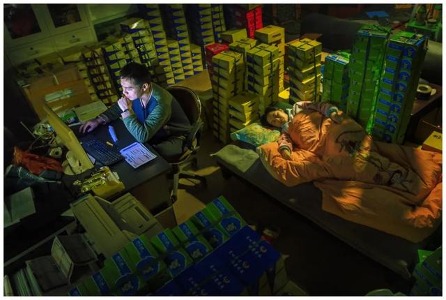 2014年,浙江温州,凌晨还在打理电商业务的夫妇。摄影/赵用