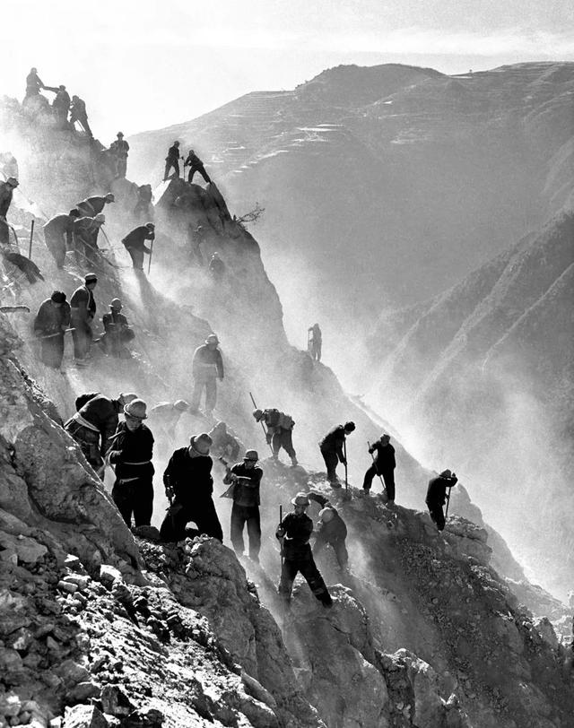1958年,甘肃,修建山上运河。摄影/茹遂初