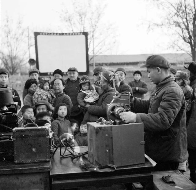 1955年,北京,电影放映下乡队为农业生产合作社的社员放映电影。摄影/牛畏予