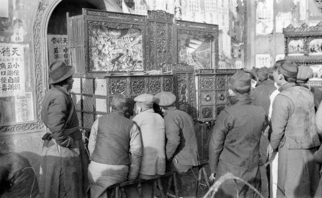 20世纪20年代-30年代,街头的拉洋片表演。摄影/史丹利·格雷戈里