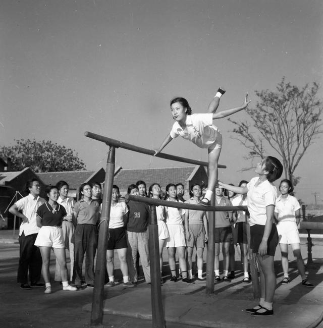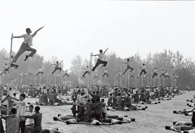 1975年,北京,全运会表演排练。摄影/袁克忠