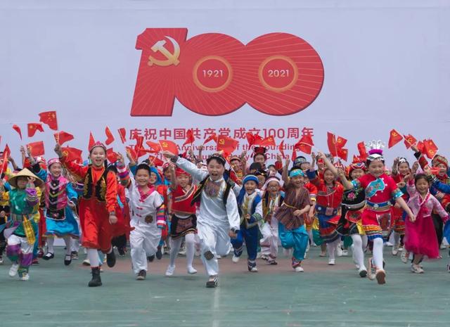 2021年,四川南充,参加中国共产党成立100周年主题活动的孩子们。摄影/彭圣洲