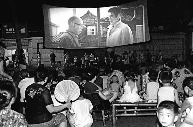 1993年,湖北武汉,一边纳凉一边看电影。摄影/胡伟鸣