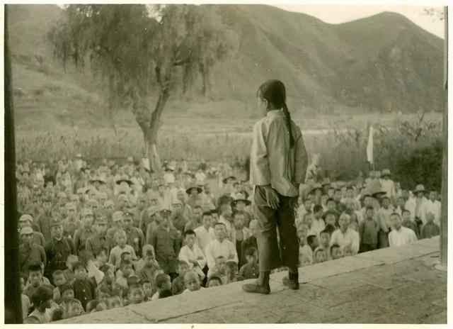 1939年,平西抗日根据地,儿童团团长在群众集会上。林迈可/摄影