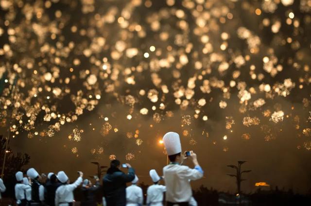 2014年,北京,厨师分享APEC焰火。摄影/廖攀