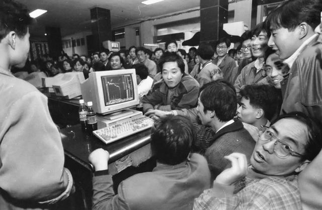 1993年,浙江杭州,股票市场初期,大户也是几十个人共用一台电脑。摄影/潘良干