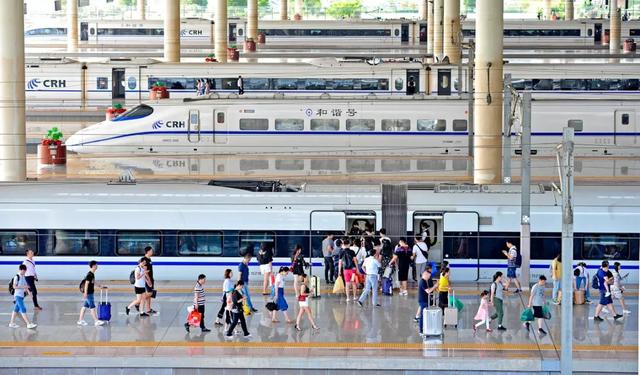 2018年,江苏南京,高铁站穿梭的旅客。摄影/蒋宁