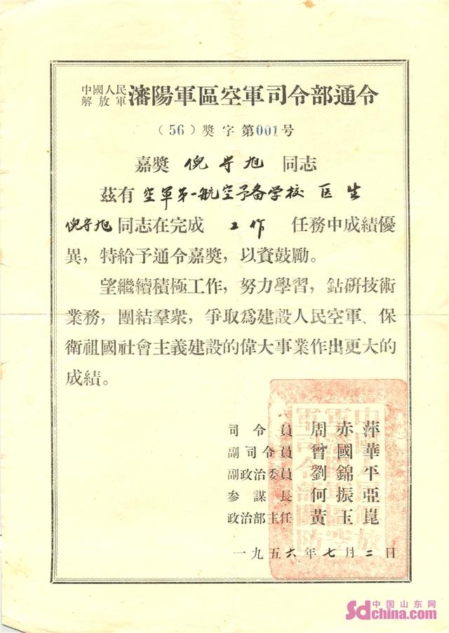 档案主人:倪寿旭,1930年12月出生,山东莱西人,离休干部。1945年2月参加八路军。1947年9月加入中国共产党。先后参加了平度战役、粉山子战役、济南战役、淮海战役、渡江战役,后由第三野战军调至第二野战军参加了解放大西南和贵州剿匪战斗。先后荣立三等功3次,记大功1次,受到军部嘉奖1次。1957年被评为空军后勤部先进工作者,受到沈阳空军军区嘉奖,光荣出席全国空军群英大会,受到毛主席等党和国家领导人的亲切接见并合影留念。同年,被授于空军大尉军衔,荣获中华人民共和国独立自由奖章和解放奖章。1963年转业到淄博市传染病医院工作。