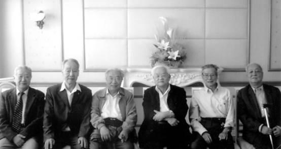 留法同学2004年在北京大学合影。右一端木正,右二林宗基,右三吴文俊,右四徐采栋(九三学社中央常务副主席、九三院士委员会主席),右五许渊冲,右六王恩韶