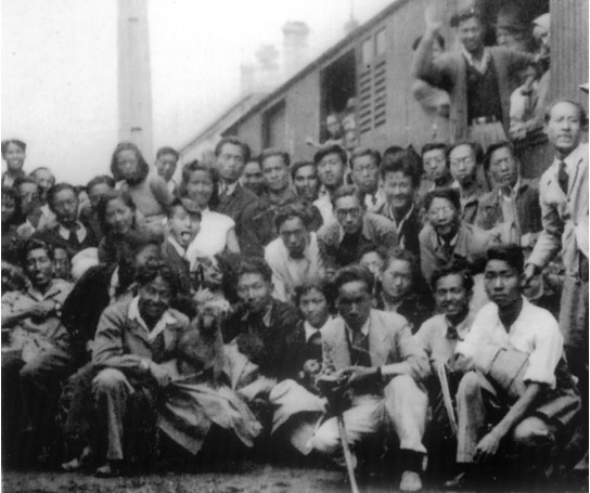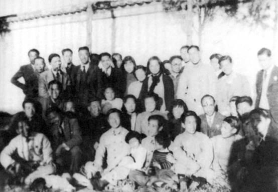 1940年5月西南联大俄文学会在翠湖公园欢送刘泽荣教授赴苏联任文化参赞。前排右二为刘泽荣教授,右三为曾昭抡教授,右四为西南联大训导长查良钊教授;前排左一为许渊冲