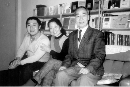 1997年许渊冲先生之子许明(左一)自美回国探亲,与父母在北京大学家中合影