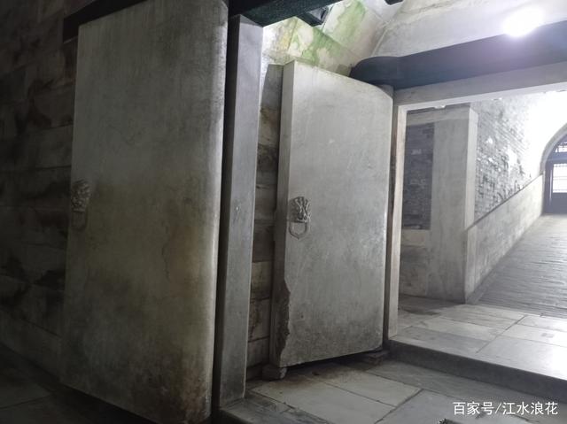 乾隆陵地宫有三道大门,最后一道大门,1928年军阀孙殿英盗墓时强行撞击大门闯入,其中一扇被损坏,现仍存放在地宫内静静地躺在地面无言的控诉着盗墓者。