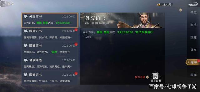 话说居其位则谋其政,国王需要处理的事务相当繁杂,对外要跟伙计们搞好关系,形成互利关系,远交近攻,打掉对自己有威胁的国家。我们的行动意愿将会以“诏书”的形式供该国玩家浏览,至于诏书写的好不好,能不能起到发动群众的效果,那还得看执笔人的文风够不够犀利了。