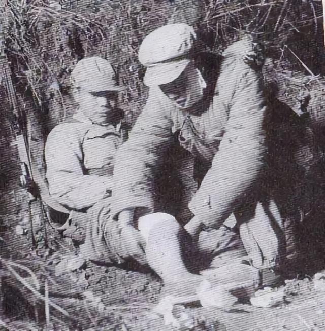 王合良用手一摸,班副的右腿被炸没了,只剩下一点点皮连着,血还在往外冒,他擦了擦右眼,勉强看清一点东西,晃荡着眼球,用随身带的绷带包扎住薛志高的双腿:“班副,我先把你背下去,再上来给你报仇!”